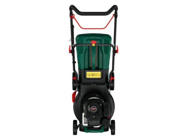 • Ruote con cuscinetti e pneumatici larghi per proteggere il prato